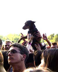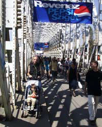 Со второго по девятое августа в Будапеште проходил крупнейший европейский музыкальный фестиваль Pepsi-Sziget - 2000. До этого он назывался Евро-Вудсток, но прибравшее к рукам почти всю подсолнуховую Венгрию "Pepsi" набилось в беспрекословные спонсоры: Вудсток - не торговая марка, а посему и не название. Так или иначе, Вудстоком там пахло посильнее, чем Пепси, а музыки было столько, что в нее можно было трижды обернуть земной шар (к последнему дню он мог вполне оказаться и земным кубом, и даже призмой - мы ни в чем не были уверены). Остров. К началу августа вся думающая европейская молодежь затаривается палатками и переселяется на огромный остров, что залегает посреди Дуная: первые два месяца лета там играют в гольф, всю осень убирают пластиковые стаканчики и целлюлозные обёртки, а всю следующую весну высаживают траву . Первого числа мы ее еще видели, даже удалось на ней посидеть. Но трава все равно была обречена: за неделю на фестивале побывало 200 тысяч человек. С палатками - 25 тысяч. Желающие поселиться на семь дней покупали хрупкий сорокадолларовый браслет (таких было 16 тысяч, из которых только 40 процентов - венгры), дающий право беспрепятственно проникать на территорию. Однодневные браслеты были и того хуже - бумажные и разноцветные. Пропускная система была отлажена до абсурда : каждый раз при входе браслет пытались оторвать. Если он не отчленялся от вспотевшей от ужаса руки - где ж я еще столько денег найду?- вы смело могли впечатываться в 16 музыкальных сцен, семь немузыкальных (театр, литература, кино, караоке, телевидение, хореография) и несчетное число прочих развлечений, от который рябило в висках и ломило в ребрах: прыжки с подъемника с резиночкой на ноге, игра в пэйнтбол, стрельба из лука, катание на карусели, дискотеки с лучшими ди-джеями европы (простите, не посещала - рассказывали), интернет в неограниченном количестве (венгерскую клавиатуру поначалу хотелось грызть от бессилия, а в поисках "собаки" переполошить всех венгров, бегло пишущих непонятные, неславянские, финно-угорские письма своим бабушкам -программисткам), пивбары, спортивные игры, бесплатно кормящие крупой и замазкой кришнаиты в юбках… Были ещё и другие элементы в этом списке, который я все равно продолжать не буду, потому как сама не до конца во все вникла… На острове было: души, умывальники, венгры и венгерская фруктовая водка Палинка (это название такое), белорусы (штук тридцать из нашего спецорганизованного автобуса, в их числе и Антон Сидоренко с журфака, и чета Протасовых из зверски забитого Би-эем "Нового вторжения", и Дмитрий "Сид" Спирин из московской группы "Тараканы" - тоже захотелось музыки послушать,- растаманы с дрэдами (это такие косички) и продукты, растаманами распространяемые. Водные процедуры позволялись, но не помогали!! Пыль реяла, витала, набивалась в нос, комьями вползала в палатку, обвивала руки, делала волосы подозрительно пышными, утолщала после расчесывания зубья расчески в три раза ( я не шучу) и мешала смотреть на небо. Небу было всё равно. Оно и в тридцатиградусную жару громоздилось прямо над головой и протяжно дышало в гудящий затылок. …Атмосфера всеобщего хиппизма и дружелюбия. Все грязные, но счастливые. Одновременно происходящие десятки действ поначалу смущали, но потом ориентироваться оказалось просто. Все было зверски продумано, и каждый почем