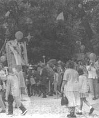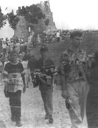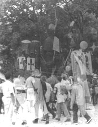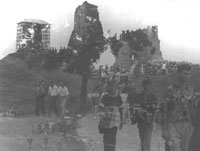 Топик Насколько длинен путь, ведущий к столу короля Артура? 23 июня 2000 года дорога вперед в прошлое обошлась нам в 440 деноминированных рублей на человека. Этих денег хватило на то, чтобы провести 5 часов в электричке, протопать 23 километра, то ли проваляться, то ли выспаться в противопожарной канаве и, наконец, почувствовать себя аж в XIV веке (тут, правда, пришлось приложить небольшие волевые усилия). В прошлое мы попали, таким образом, всего за две бутылки "Жигулевского" пива. Имя у нашей седой старины - НОВОГРУДОК, вернее, НАВАГРАДАК. 24-25 июня там прошел средневековый фестиваль. Пролог. Вперед в прошлое Да, в XIV век нам удалось попасть, заплатив всего 440 рублей. Путешествие по железной дороге до станции Новоельня, что на одноколейке Барановичи-Лида, ничем практически не запомнилось. Из свидетельства очевидца ..Помню, что на перроне меня никто не ждал (!). Помню, как в двери активно пихалось население со всех пригородных платформ. "На дачу, суки, не успеют", - хриплым голосом откомментировал мрачный провинциальный подросток в майке, поправил золотой православный крест и начал читать анекдоты в "Комсомолке-по-пятницам". "Умеет читать!" Я был умилен. Помню, как нашел своих - в четвертом по счету вагоне, в вагоне номер пять. Они сидели вдвоем, лицом к стенке, ногами в рюкзак. Я увидел их спины и закричал на весь вагон: "Не мо-гли по-до-ждать пять ми-нут!!! Я вас догонял НА ТАКСИ до самых Столбцов!!!" Лешик и Глеб заулыбались очень-очень. Они объяснили, что едут только вдвоем, а я, стало быть, неожиданный третий. Лешик при этом многозначительно расширил зрачки, и я увидел торчащие из карманов рюкзаков полуторалитровые бутылки с надписью "БАЛТИКА. Медовое". Мне тут же объяснили, что от БАЛТИКИ только бутылки, а так - "Беловежское". И последнее воспоминание. На лавке наискосок уселись внучок с дедулей. Усталого лица внучок в рубахе с наглухо опущенными рукавами откупорил старого винного образца бутылку и одним глотком пролил половину содержимого цвета анализов себе в глотку. Вторую половину тем же маневром залил в себя дедуля. Лешик следил за ними с полуоткрытым ртом. "Может, лимонад?" - с надеждой спросил я попутчиков. "Не-ет, чернила", - сосредоточенно-уважительно ответили мне мои товарищи. А вот в Новоельне началось. Прежде всего, прошествовать 23 километра до Наваградка нам предстояло в компании очаровательных представителей панк-культуры города Минска. Замечу, что господа панки, как им и подобало, были пьяны вдрызг еще при посадке в электричку на о.п. Институт Культуры. Панки оказались странными - пили водку и распевали почему-то не Sex pistols, а Земфиру и Муммий Тролля. Как они пили водку, я не видел. Но "наклюкались" эти товарищи действительно здорово, ответственно так нажрались. А еще среди них были девушки. Девушки были панковские и беларускамоўныя. Часть панков уже на первом километре остановила "Скорую помощь" и уехала в Новогрудок(?). Кому-то из наших попутчиков-неформалов приспичило объявить войну дорожным знакам. И вот под слова припева "уходим-уходим-уходим" дорожные знаки, которые, наверное, не одному поколению водителей запрещали превышать скорость и обгонять, действительно уходили... в небытие. В результате дорога все более приближалась к своему первобытному состоянию. Истомившись, панки направились в кусты, на дозаправку. И на дороге мы остались одни. …А на р